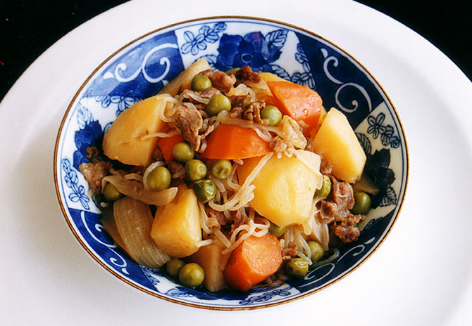 海軍厨業管理教科書で「甘煮」と紹介されていた「海軍式肉じゃが」を再現。また、呉と舞鶴は、肉じゃが発祥の地を巡る論争が繰り広げられています。