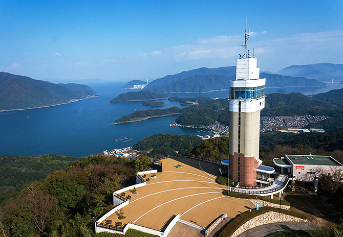 海抜325mの展望デッキからは360度の絶景が広がり、舞鶴湾の美しいリアス式海岸と舞鶴の市街地を一望できます。海と山の大自然と日本近代化の歴史を感じる舞鶴の街並みが織りなす日本屈指の眺望を、ゆっくりと楽しめます。舞鶴湾は、湾口が約700mと狭く周囲400m級の山々に囲まれているため、1年を通して風や波に影響が少ない天然の良港です。郵政省近畿郵政局が1985年に実施した、公募による観光地選定事業「近畿百景」で「五老ヶ岳からの舞鶴湾」が第1位に選定されました。