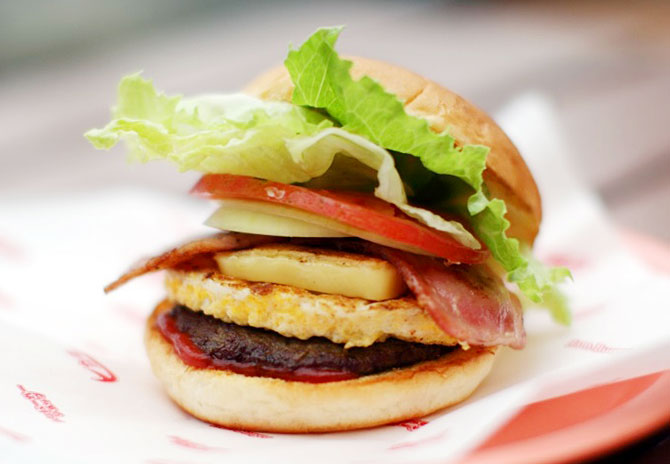 和牛パティのみならず、チキンカツや肉厚ベーコン、ステーキなど、具材のバリエーションも多彩です。