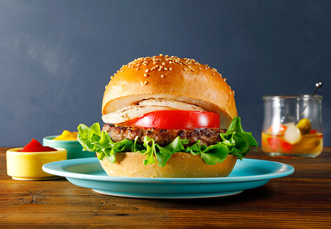 米海軍横須賀基地より提供されたレシピから生まれた本場のアメリカンバーガー。100%ビーフのビッグなサイズと、シンプルな味付けが特徴。